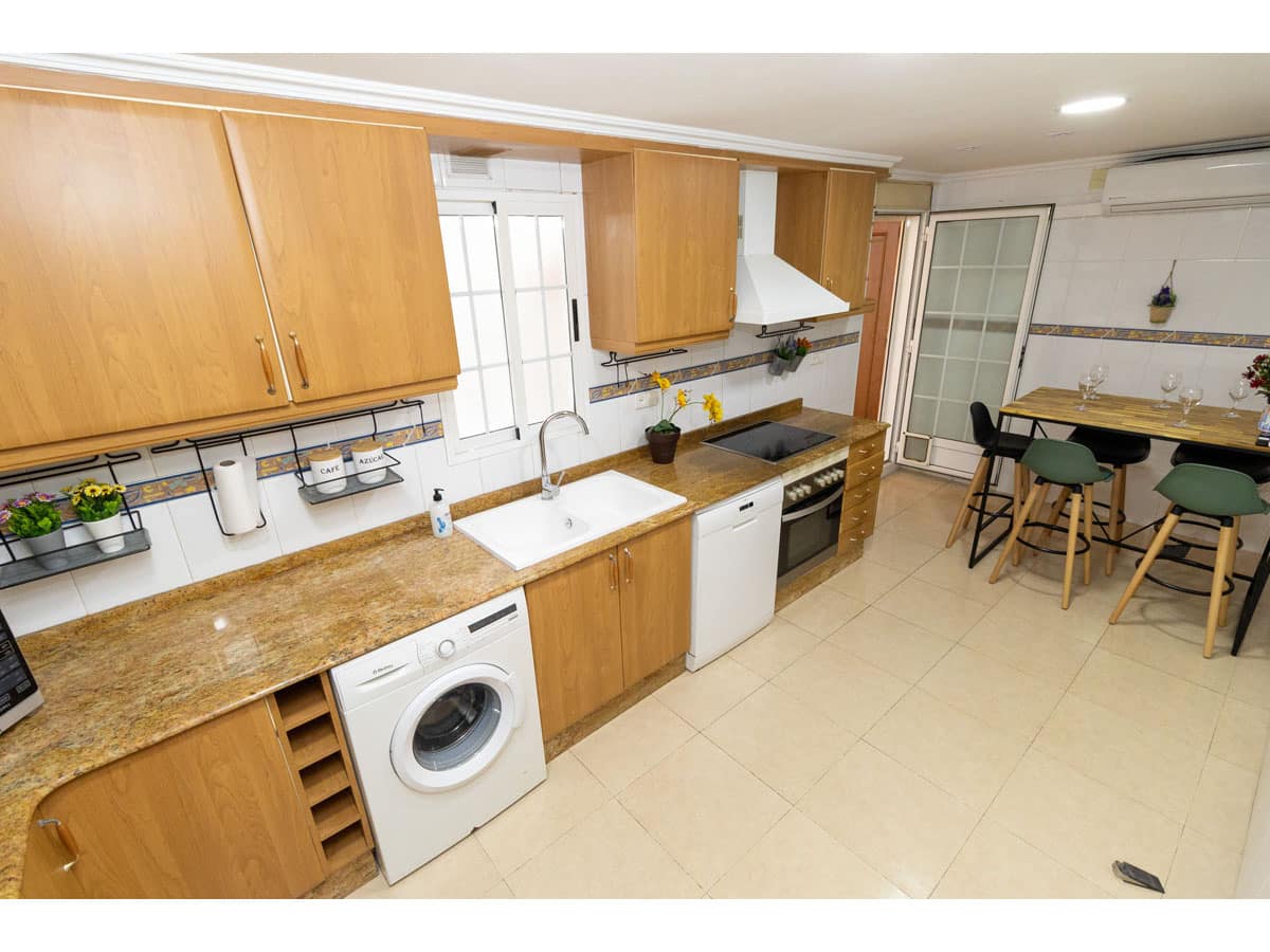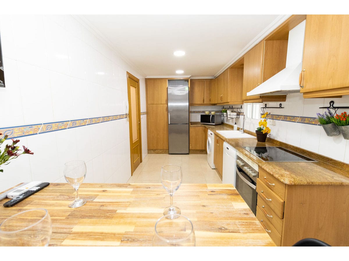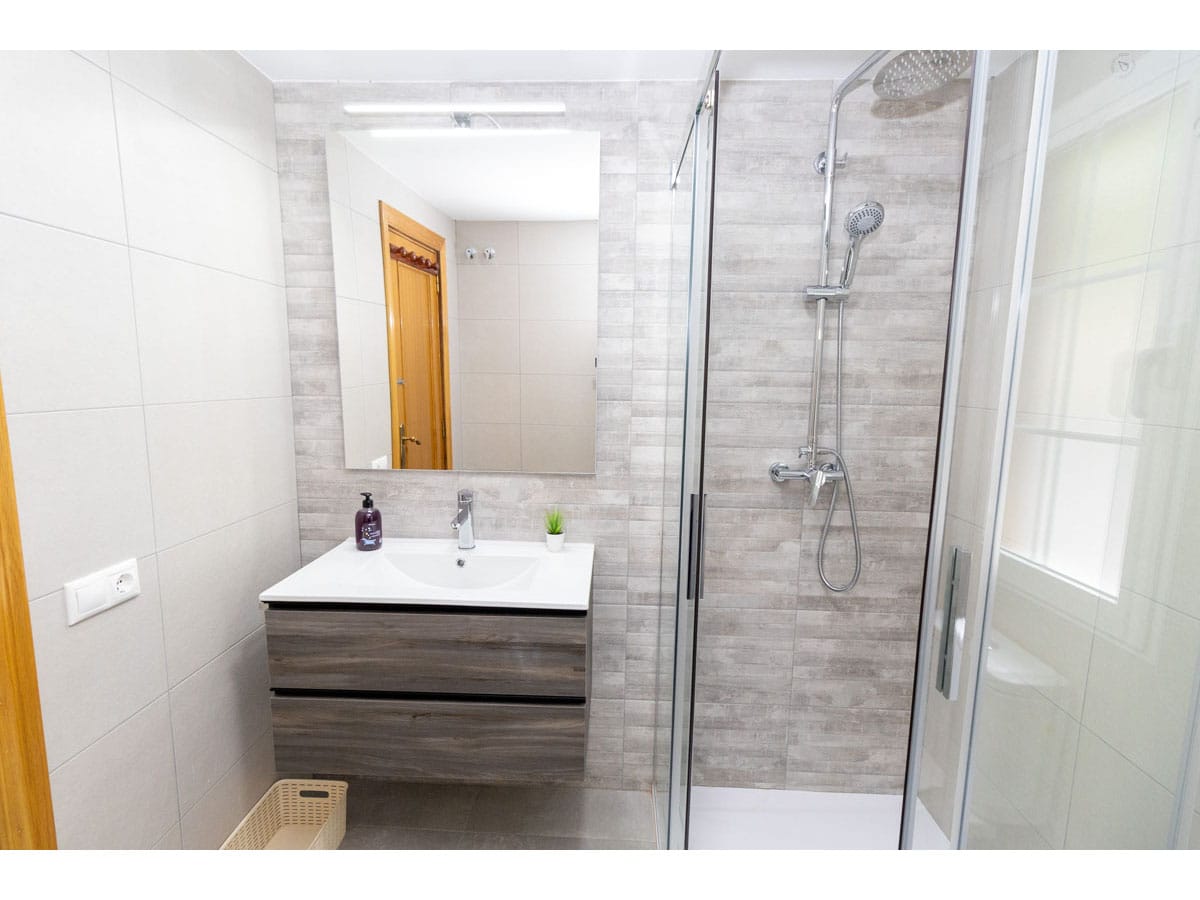 Piso de 5 habitaciones: 3 habitaciones individuales, 1 habitación con balcón, 1 habitación con cama doble, y 2 baños. Las habitaciones 1 y 2 tienen cama de 105 cm, lavabo, ventilador de techo, armario empotrado, escritorio, estantería y vista exterior. La habitación 3 tiene cama de 135 cm, doble armario, ventilador de techo, y escritorio. La habitación 4 tiene cama de 105 cm,armario, escritorio y balcón privado espacioso con vista a la Av del Puerto. La habitación 5 tiene cama canapé de 105 cm, escritorio, armario,y ventilador de Techo. Esta habitación es bastante luminosa, debido a su ventanal que es amplio y con vista exterior. El piso cuenta con 2 baños a compartir entre todos en el piso. Además, el piso tiene una cocina espaciosa, dotada de todos los electrodomesticos necesarios e incluye algunos adicionales como : lavavajillas, cafetera, horno, mixer,sanduchera, tostadora, exprimidor, pesa de alimentos y secador de cabello para todo el piso. En la cocina además de estar muy bien equipada, podréis encontrar un espacio para comer con tus compañeros de piso, ya que cuenta con un comedor con TV y aire acondicionado para disfrutar esos momentos de compartir. El piso también cuenta con patio exterior que conecta con la cocina.