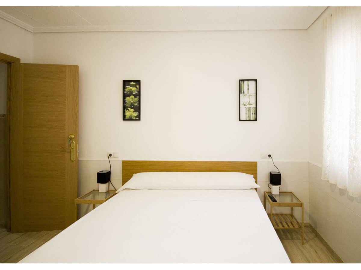 Habitación doble para pareja con cama de matrimonio de 1’50 mts, dispone de baño completo privado.